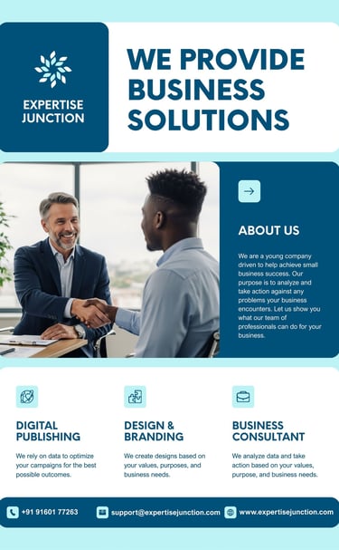 Over the years, I’ve worked across graphic design, video editing, and content strategy—helping brands communicate clearly and creatively. At Expertise Junction, I blend design thinking with storytelling to create visuals that connect, engage, and perform.